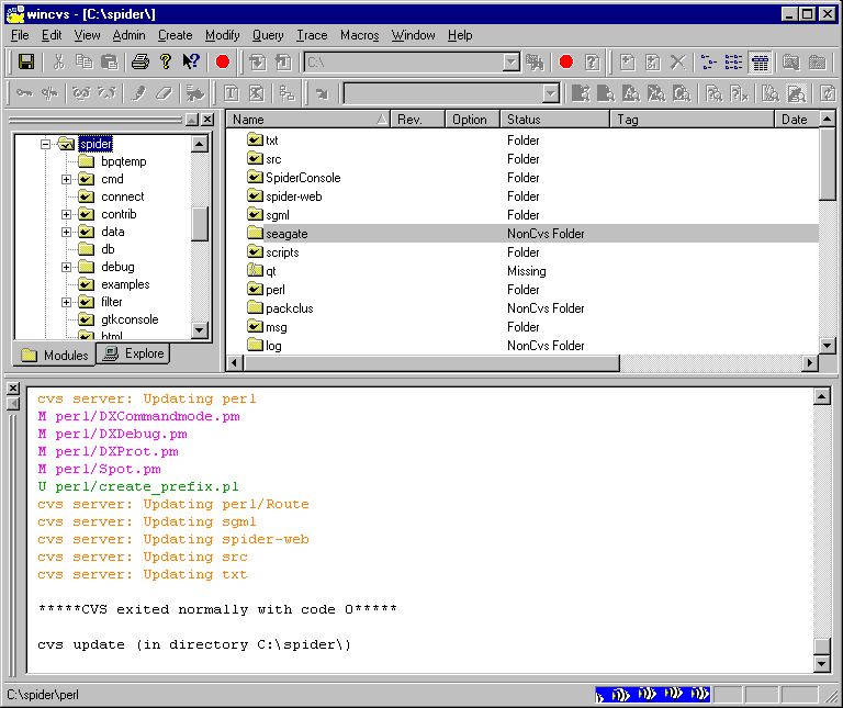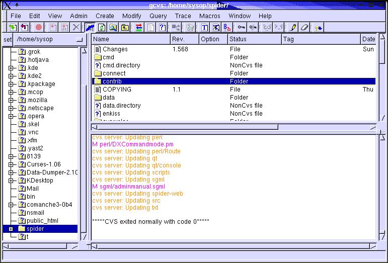 CVS stands for "Concurrent Versions System" and the CVS for DXSpider is held at Sourceforge. This means that it is possible to update your DXSpider installation to the latest sources by using a few simple commands. A graphical interface to CVS for Windows is explained in the next section.